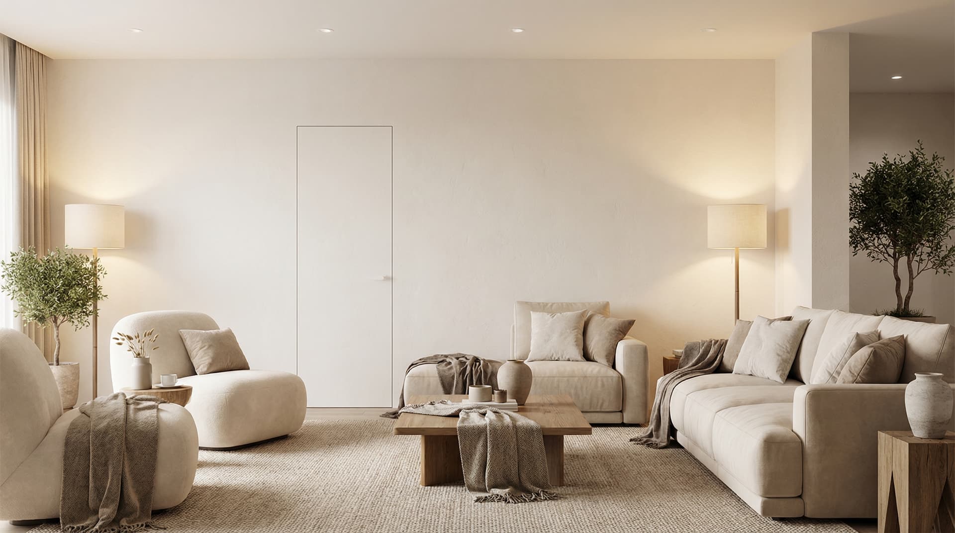 Двери скрытого монтажа позволяют создать цельное пространство без выступающих наличников и визуального шума. Полотно и отделка подбираются так, чтобы дверь становилась частью стены и поддерживала общую концепцию интерьера.